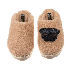 Teddy Closed Toe Slippers With Snoopy The Black Pug Brooch