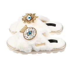 Ultralight Chic Slippers With Evil Eye & Hamsa Brooches