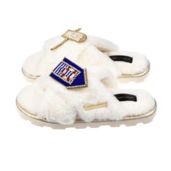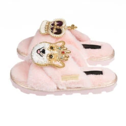 Ultralight Chic Slippers With Corgi & Crown Brooches
