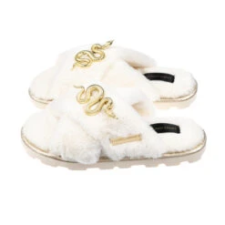 Ultralight Chic Slippers With Metal Gold Snake Brooches