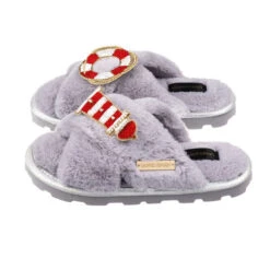 Ultralight Chic Slippers With Beach Hut & Sign Brooches