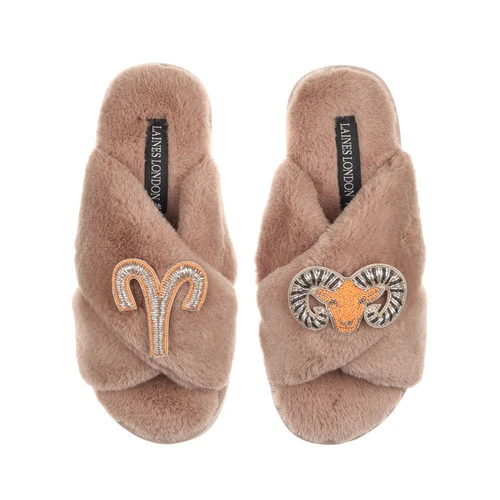 Our faux fur cross strap classic slippers offer the ultimate comfort & style.