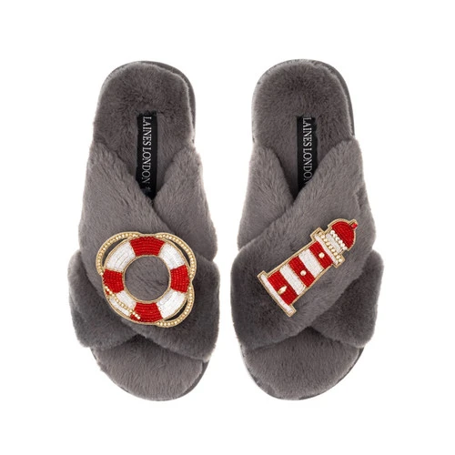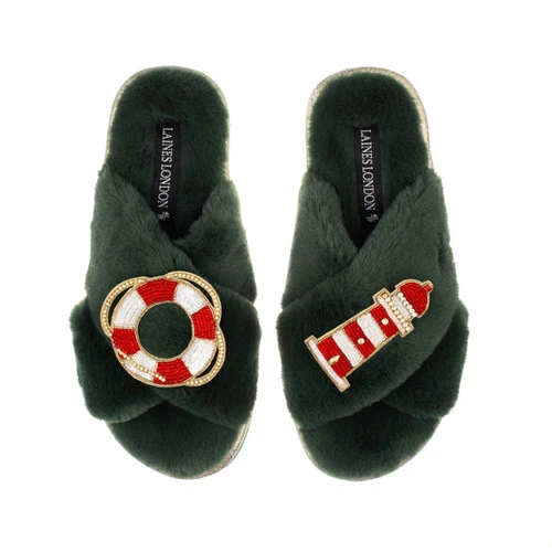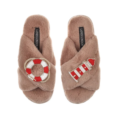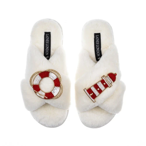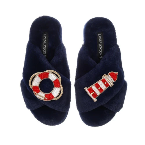 Classic Laines Slippers With Beach Ring & Lighthouse Brooches