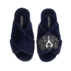 Classic Laines Slippers With Bentley The Black & White Spaniel Brooch