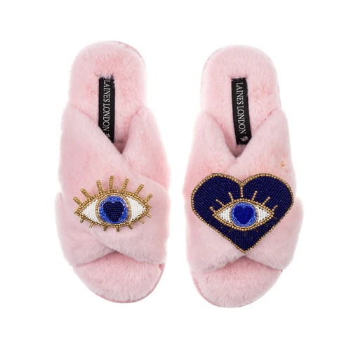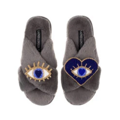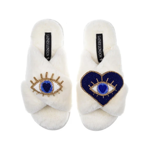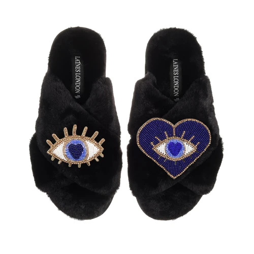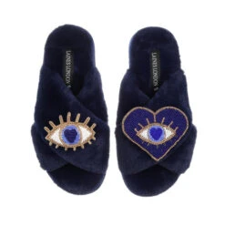 Classic Laines Slippers With Double Blue & Gold Eye Brooches