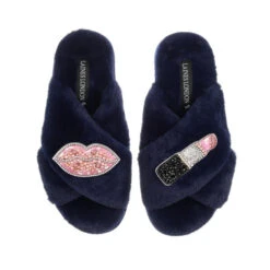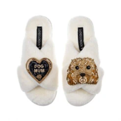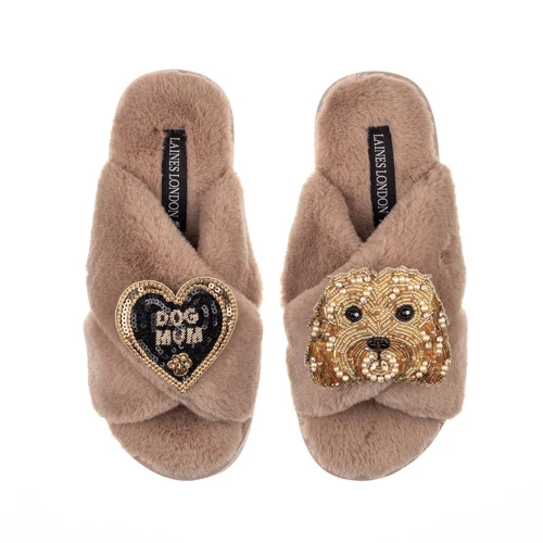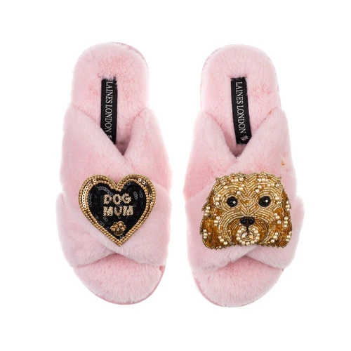 Classic Laines Slippers With Enki Doo The Cockapoo & Dog Mum Brooches