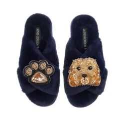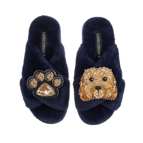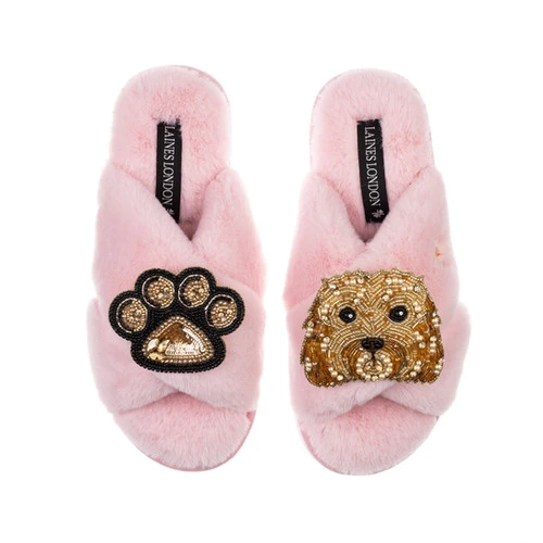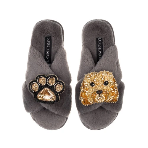 Classic Laines Slippers With Enki Doo The Cockapoo & Paw Brooches