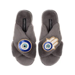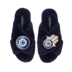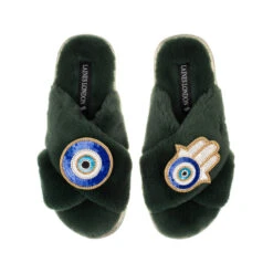 Classic Laines Slippers With Evil Eye & Hamsa Hand Brooches
