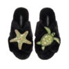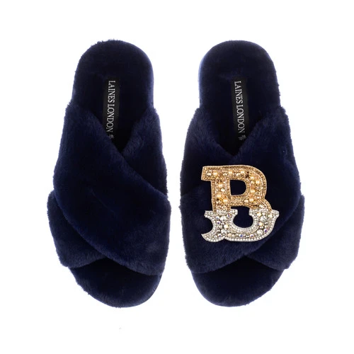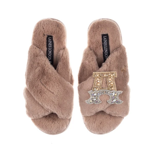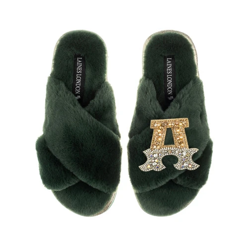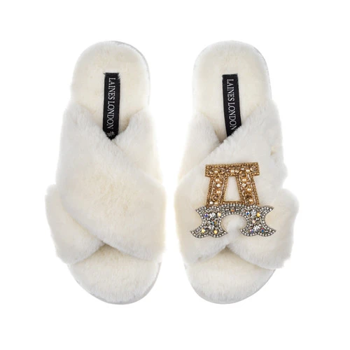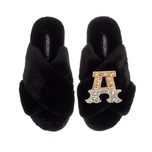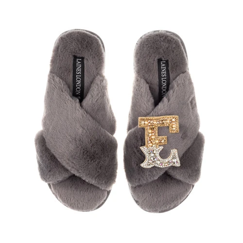 Classic Laines Slippers With Gold & Silver Initial Brooch