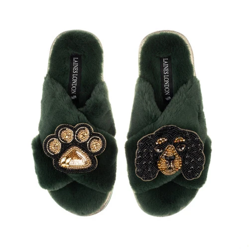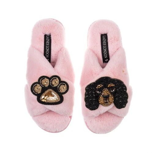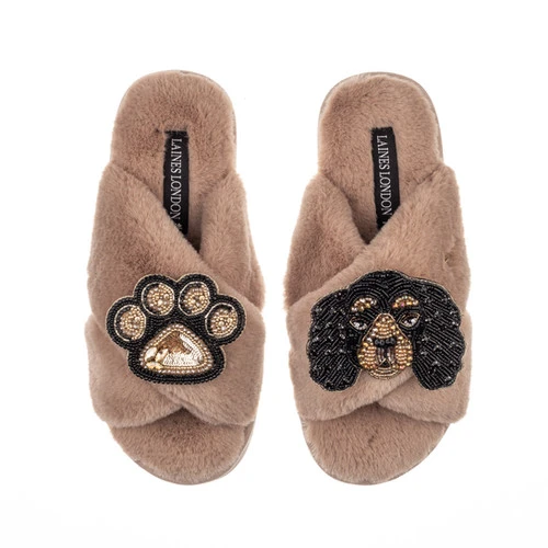 Classic Laines Slippers With Louie The King Charles & Paw Brooches