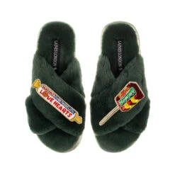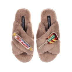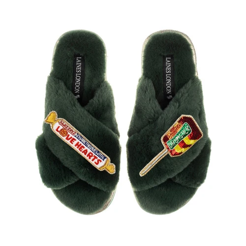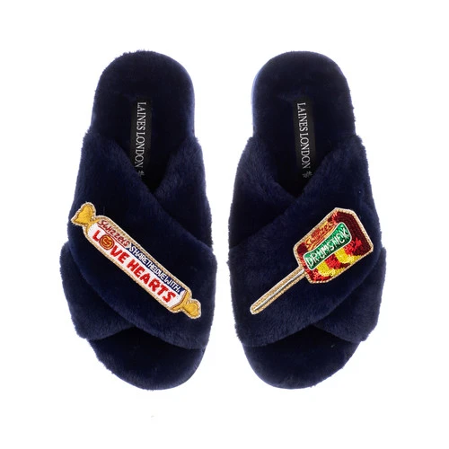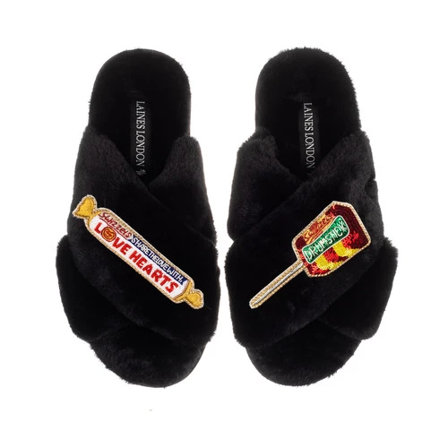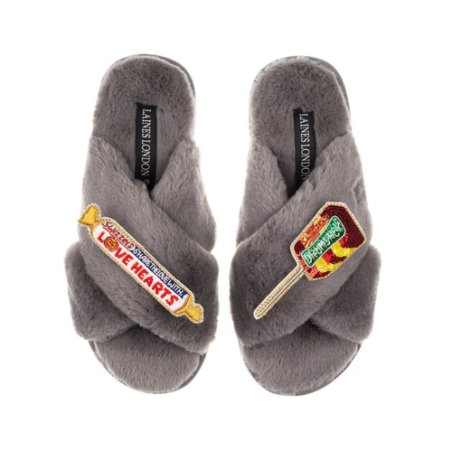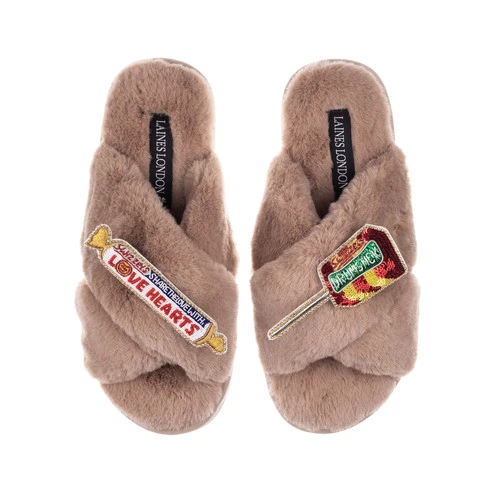 Classic Laines Slippers With Love Hearts & Drumstick Brooches