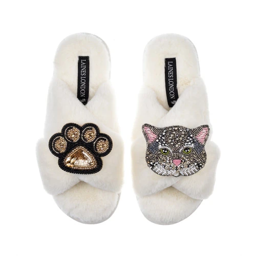 Our faux fur cross strap classic slippers offer the ultimate comfort & style.