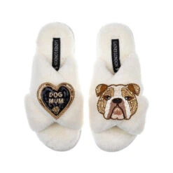 Classic Laines Slippers With Mr Beefy The Bulldog & Dog Mum Brooches