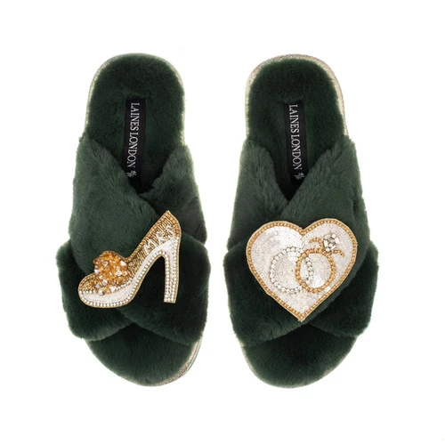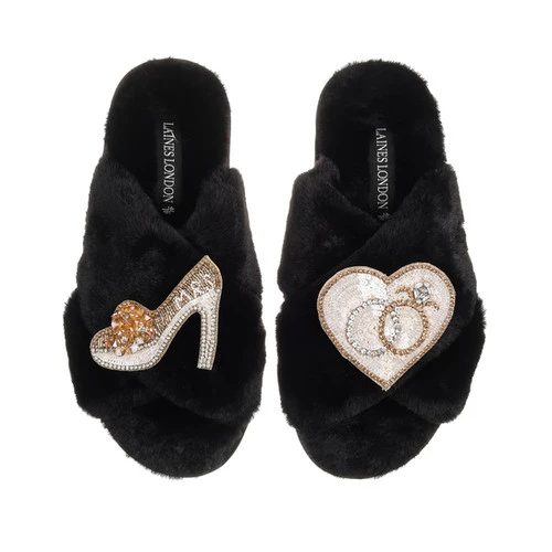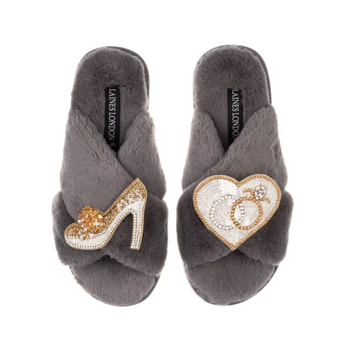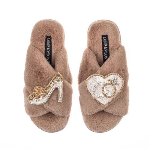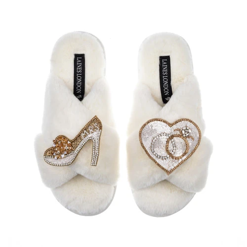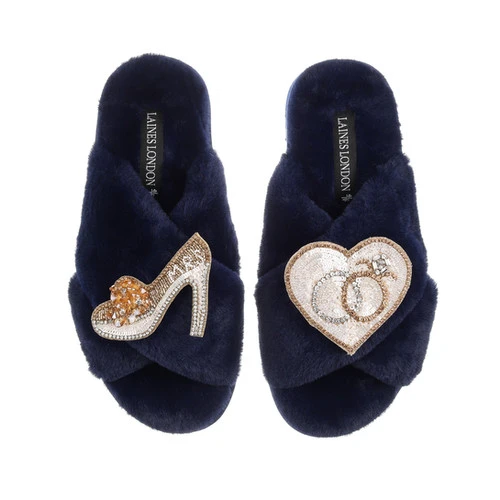 Classic Laines Slippers With Mrs Heel & Wedding Ring Brooches