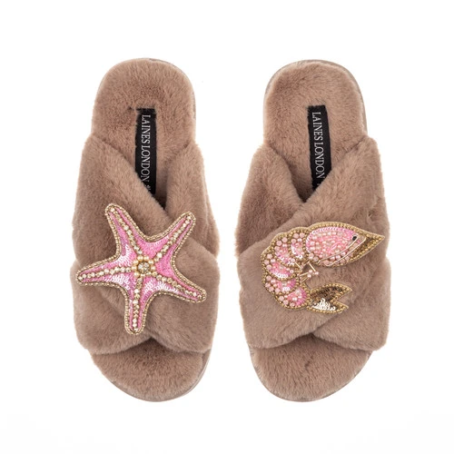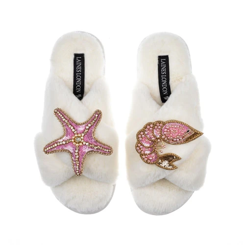 Our faux fur cross strap classic slippers offer the ultimate comfort & style.