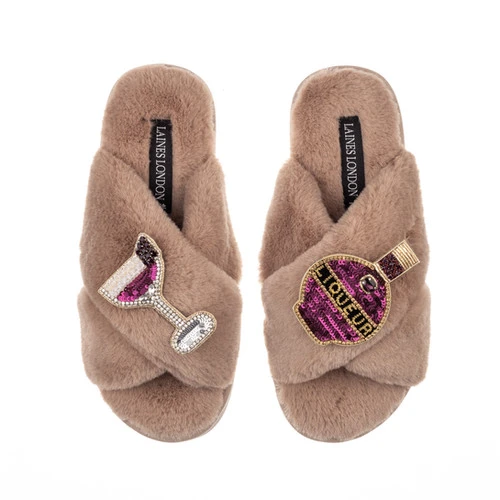 Classic Laines Slippers With Raspberry Liqueur Brooches