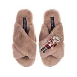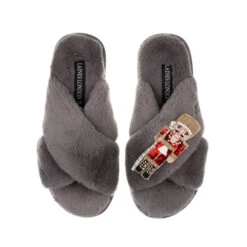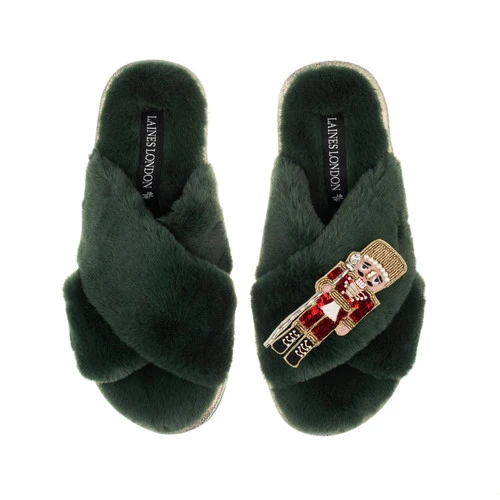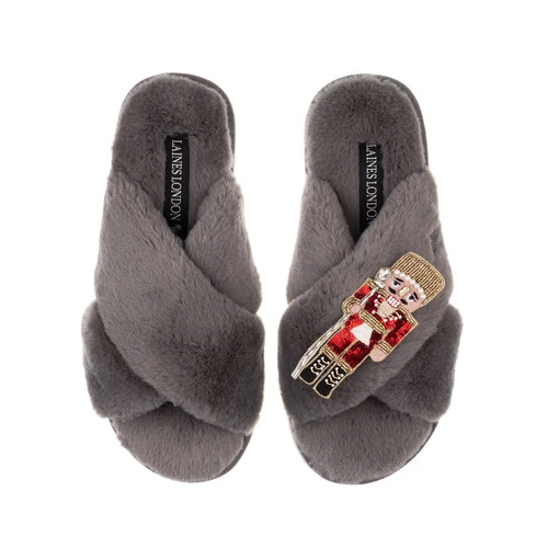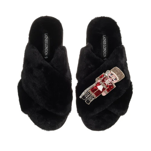 Classic Laines Slippers With Red & Gold Nutcracker Brooch
