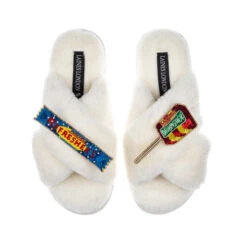 Classic Laines Slippers With Refresher & Drumstick Brooches