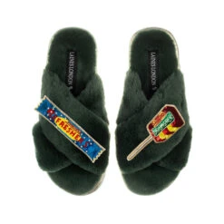 Classic Laines Slippers With Refresher & Drumstick Brooches