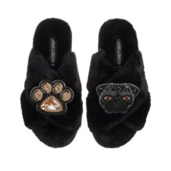 Classic Laines Slippers With Snoopy The Pug & Paw Brooches