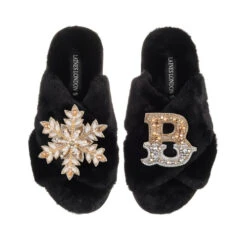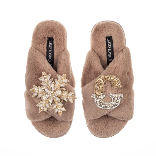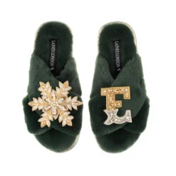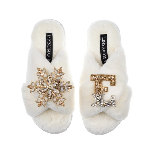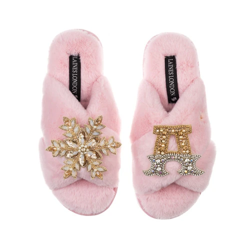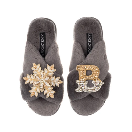 Classic Laines Slippers With Snowflake & Initial Brooches