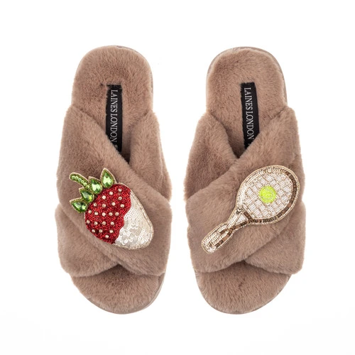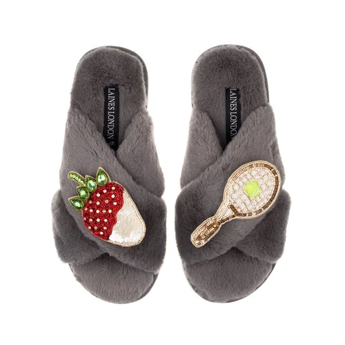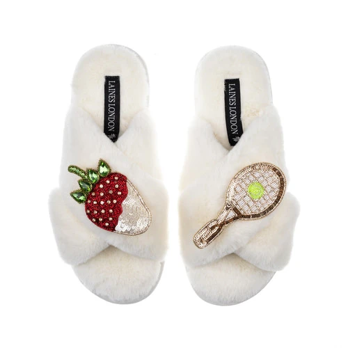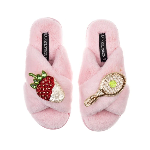 Classic Laines Slippers With Tennis & Strawberry Brooches
