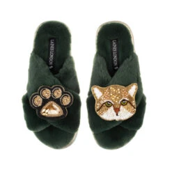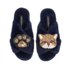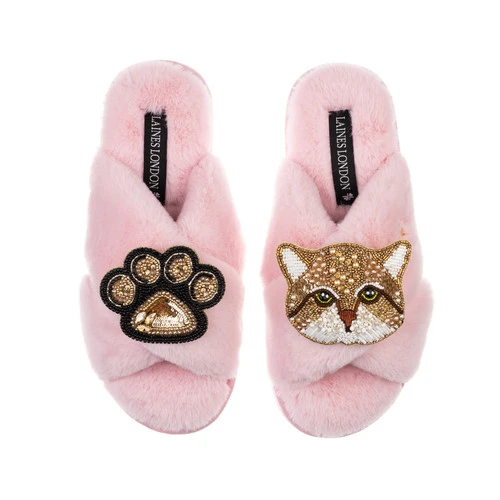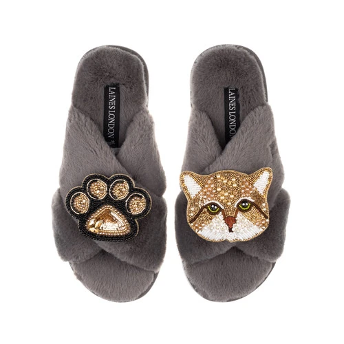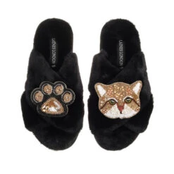 Classic Laines Slippers With Tom Cat & Paw Brooches