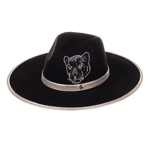 Laines London Black Couture Fedora Hat With Embellished Panther