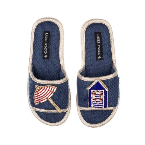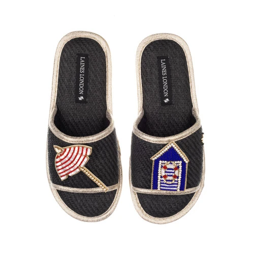 Straw Braided Sandals With Beach Hut & Parasol Brooches