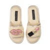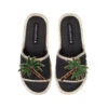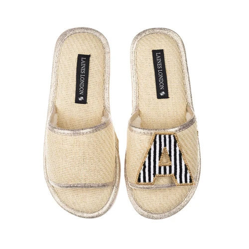 Straw Braided Sandals With Black & White Stripe Initial Brooch