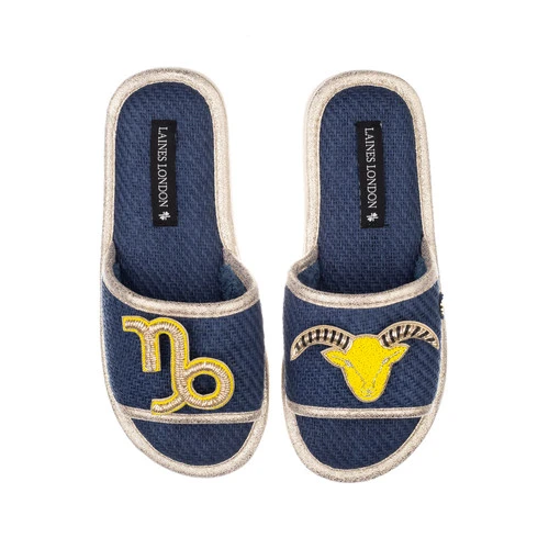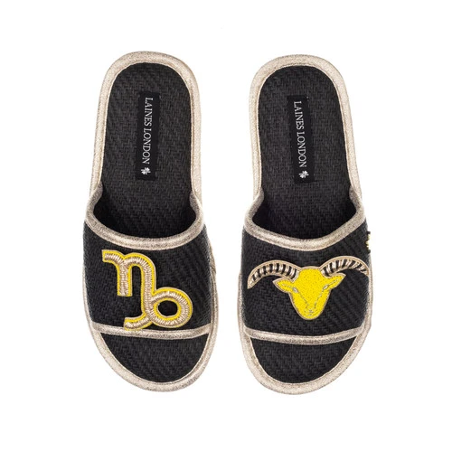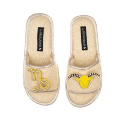 Straw Braided Sandals With Capricorn Star Sign Brooches