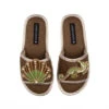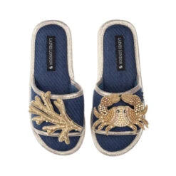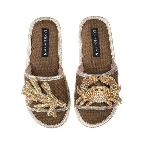 Straw Braided Sandals With Gold Crab & Coral Brooches