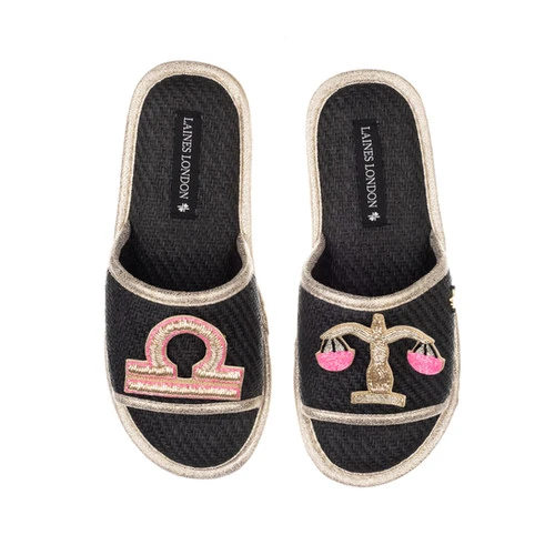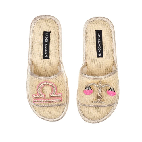 Straw Braided Sandals With Libra Star Sign Brooches