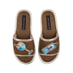 Complete with handmade embellished removable brooches, our signature gold binding and a terry towelling lining on the inside of the strap to offer you the ultimate comfort.