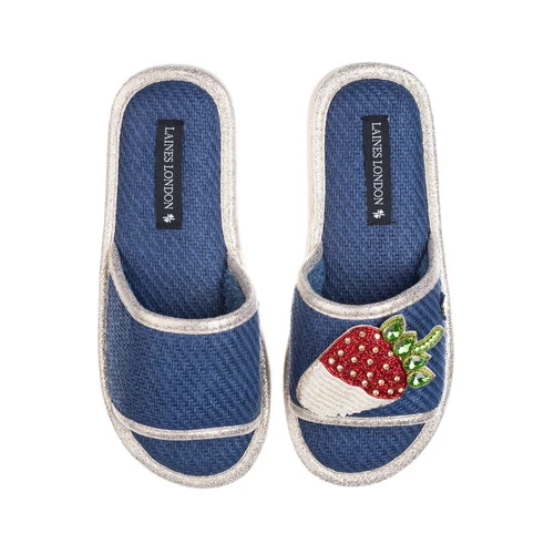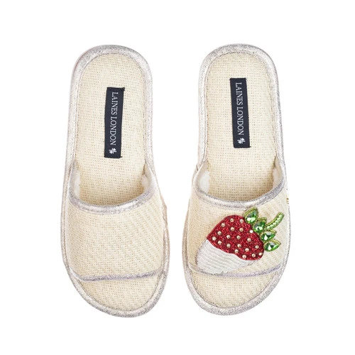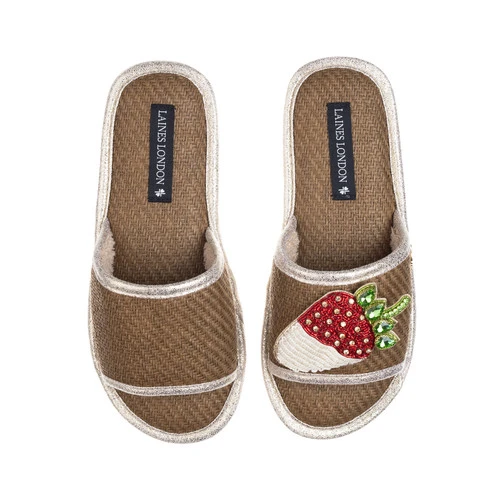 Straw Braided Sandals With Strawberry & Cream Brooch
