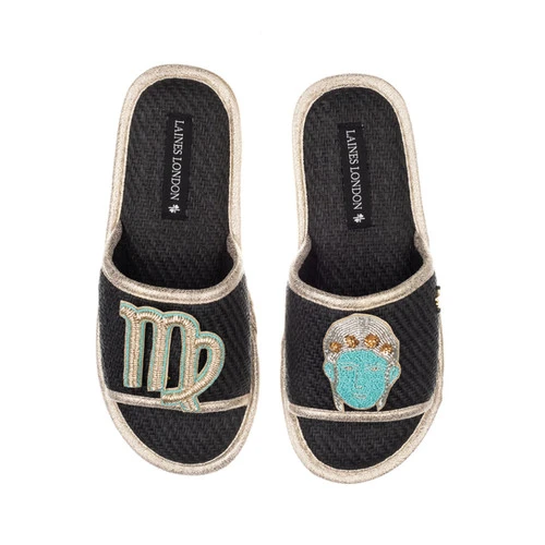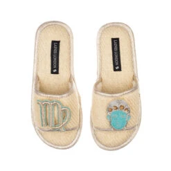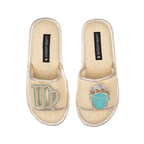 Straw Braided Sandals With Virgo Star Sign Brooches
