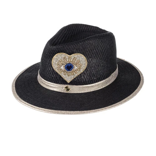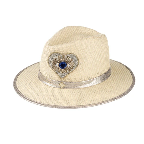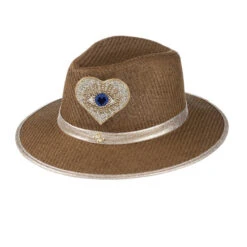 The hat is embellished with a handmade removable brooch and is perfect for the beach, holidays or to give any outfit a fabulous finish.