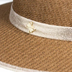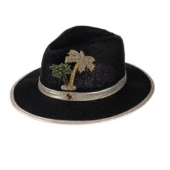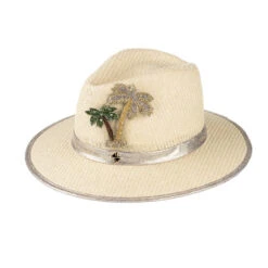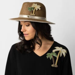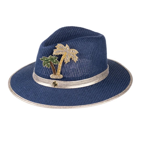 The hat is embellished with a handmade removable brooch and is perfect for the beach, holidays or to give any outfit a fabulous finish.