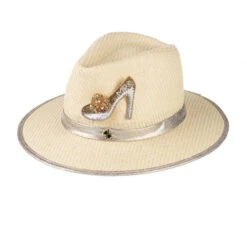 Straw Woven Hat With Embellished Mrs Heel Brooch