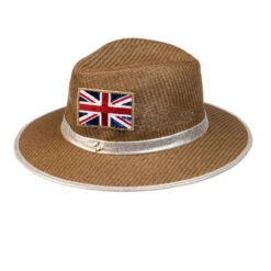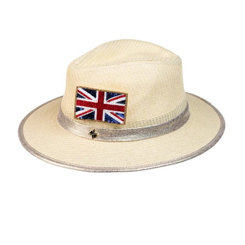 Straw Woven Hat With Embellished Union Jack Brooch