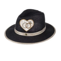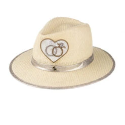 Straw Woven Hat With Embellished Wedding Rings Heart Brooch