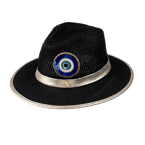The hat is embellished with a removable brooch and is perfect for the beach, holidays or to give any outfit a fabulous finish.