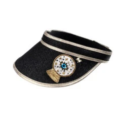 The visor is embellished with a handmade removable brooch and is perfect for the beach, holidays or to give any outfit a fabulous finish.