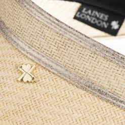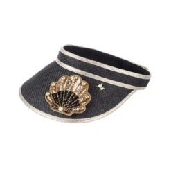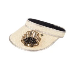 Straw Woven Visor With Embellished Black & Gold Shell Brooch