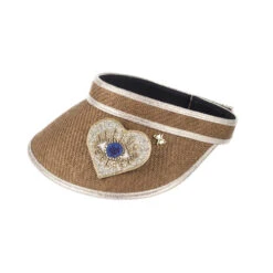 The visor is embellished with a handmade removable brooch and is perfect for the beach, holidays or to give any outfit a fabulous finish.