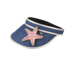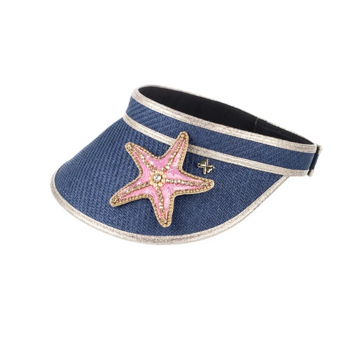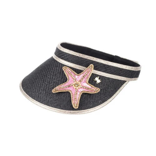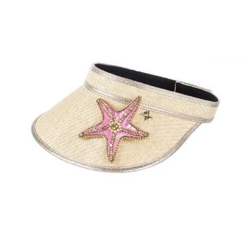 Straw Woven Visor With Embellished Gold & Pink Starfish Brooch