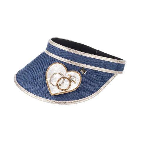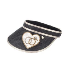 Straw Woven Visor With Embellished Wedding Rings Heart Brooch