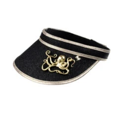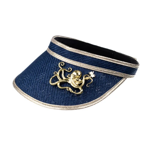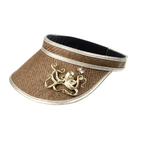 Straw Woven Visor With Gold Metal Octopus Brooch