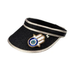 Straw Woven Visor With Hamsa Hand Brooch