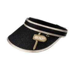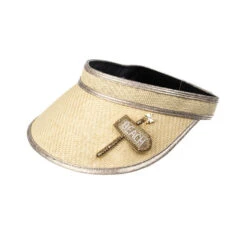 Straw Woven Visor With This Way To The Beach Sign Brooch